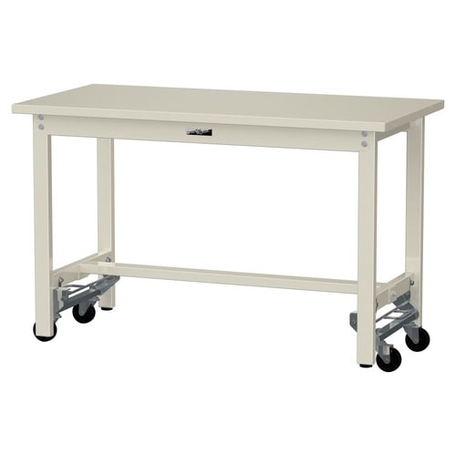 軽量作業台/耐荷重300kg固定時 ワンタッチ移動式 スチール天板 ワークテーブル300 W1200D600H740mm SWSU−1260−II アイボリー 1台【メーカー直送】