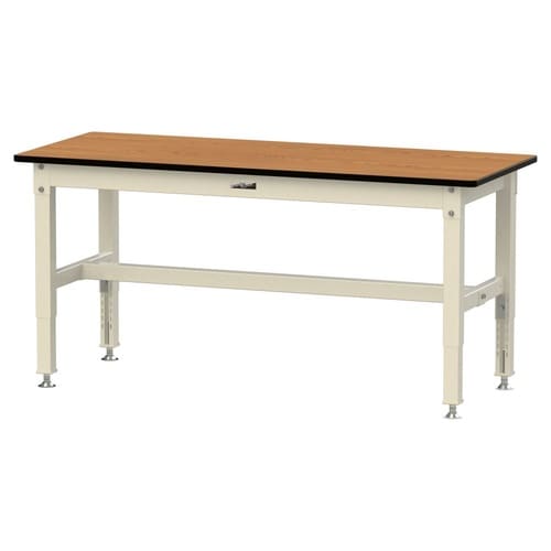 中量作業台/耐荷重800kg 高さ調整式 メラミン天板 ワークテーブル800 W1500D600H600−850mm SVMA−1560−MI 天板木目柄脚アイボリー 1台【メーカー直送】