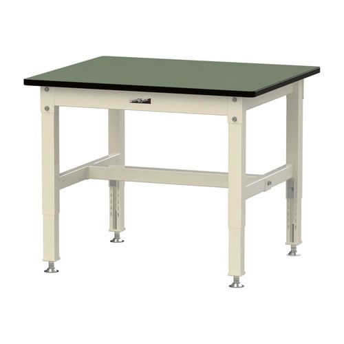 中量作業台/耐荷重800kg 高さ調整式 塩ビシート天板 ワークテーブル800 W900D750H600−850mm SVRA−975−GI 天板グリーン脚アイボリー 1台【メーカー直送】
