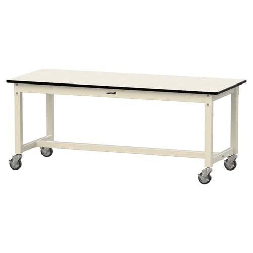 中量作業台/耐荷重320kg 移動式 メラミン天板 ワークテーブル800 W1800D750H740mm SVMC−1875−II アイボリー 1台【メーカー直送】