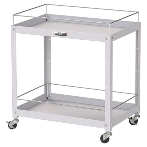 コンビニエンス(便利)なスチール製ツールワゴン。各段に棚板高さ+60mmのこぼれ止め付き!スプレー缶等の収納にも便利です。ゴムキャスターは弾性があり、凹凸のある地面でも走行しやすいです。 |