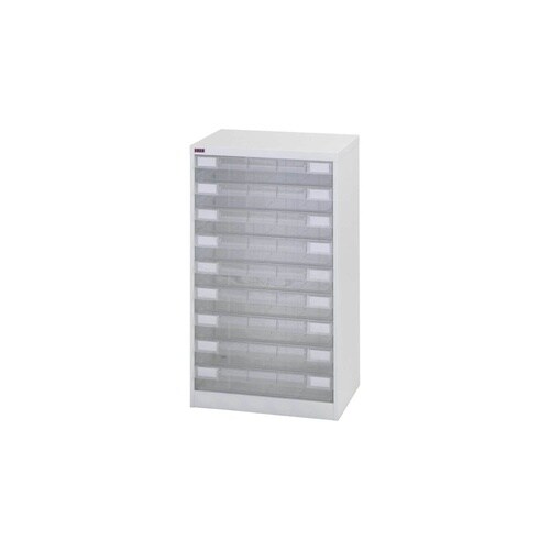 A3サイズ引出しの書類整理棚。文房具など小物収納用のフロアケースとしても役立ちます。引出しは透明のため収納物が見やすい。フラットファイルがそのまま入る大きめサイズの引出しで便利です。 |