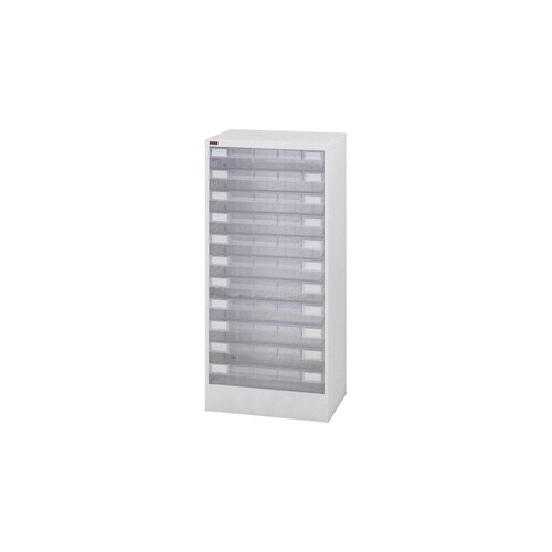 A3サイズ引出しの書類整理棚。文房具など小物収納用のフロアケースとしても役立ちます。引出しは透明のため収納物が見やすい。フラットファイルがそのまま入る大きめサイズの引出しで便利です。 |