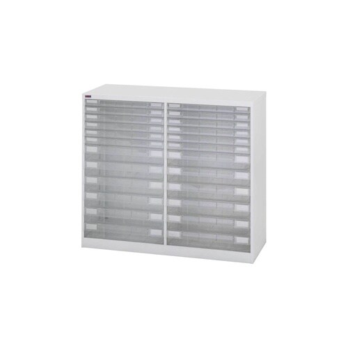 A3サイズ引出しの書類整理棚。文房具など小物収納用のフロアケースとしても役立ちます。引出しは透明のため収納物が見やすい。フラットファイルがそのまま入る大きめサイズの引出しで便利です。 |