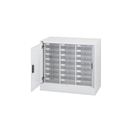 書類整理棚/アレンジャー 誘導扉付・鍵付 A4縦 引出深型8段×3列 W995D551H880mm A4PT−308UN オフィスホワイト 1台【メーカー直送】