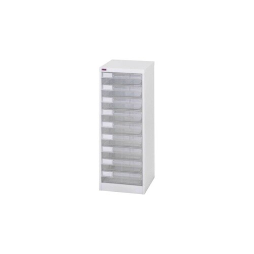 B4サイズ引出しの書類整理棚。文房具など小物収納用のフロアケースとしても役立ちます。引出しは透明のため収納物が見やすい。フラットファイルがそのまま入る大きめサイズの引出しで便利です。 |