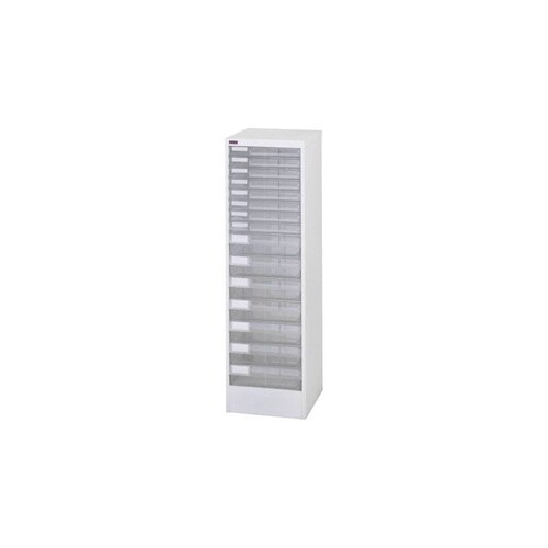 B4サイズ引出しの書類整理棚。文房具など小物収納用のフロアケースとしても役立ちます。引出しは透明のため収納物が見やすい。フラットファイルがそのまま入る大きめサイズの引出しで便利です。 |