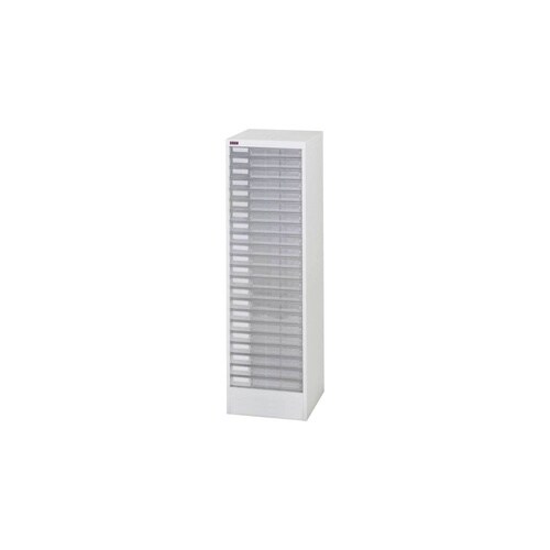 B4サイズ引出しの書類整理棚。文房具など小物収納用のフロアケースとしても役立ちます。引出しは透明のため収納物が見やすい。フラットファイルがそのまま入る大きめサイズの引出しで便利です。 |