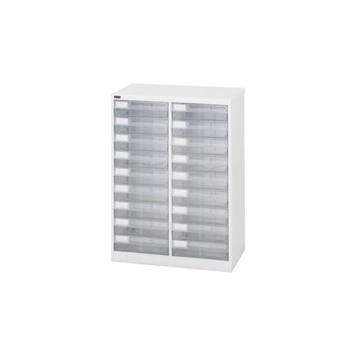 B4サイズ引出しの書類整理棚。文房具など小物収納用のフロアケースとしても役立ちます。引出しは透明のため収納物が見やすい。フラットファイルがそのまま入る大きめサイズの引出しで便利です。 |