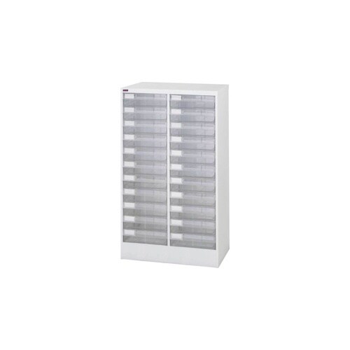 B4サイズ引出しの書類整理棚。文房具など小物収納用のフロアケースとしても役立ちます。引出しは透明のため収納物が見やすい。フラットファイルがそのまま入る大きめサイズの引出しで便利です。 |
