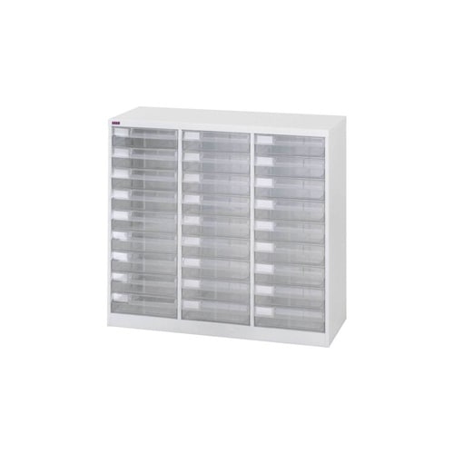 B4サイズ引出しの書類整理棚。文房具など小物収納用のフロアケースとしても役立ちます。引出しは透明のため収納物が見やすい。フラットファイルがそのまま入る大きめサイズの引出しで便利です。 |