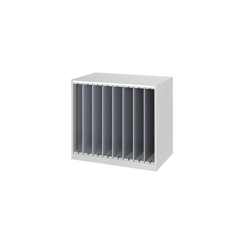 大判の書類やファイルの収納に便利な縦型の書類整理棚。7枚標準付属の仕切り板で細かく収納スペースを分けられます。 |