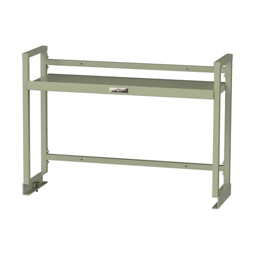 1段棚付きの作業台用上棚。作業に使う工具やパーツを手の届く位置に収納して作業効率アップ!傾斜可能の棚板で収納物が見えやすく取り出しやすい。棚板の取付位置は50mmピッチで可変。オールスチール製で頑丈! |