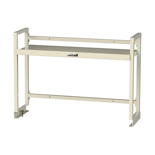1段棚付きの作業台用上棚。作業に使う工具やパーツを手の届く位置に収納して作業効率アップ!傾斜可能の棚板で収納物が見えやすく取り出しやすい。棚板の取付位置は50mmピッチで可変。オールスチール製で頑丈! |