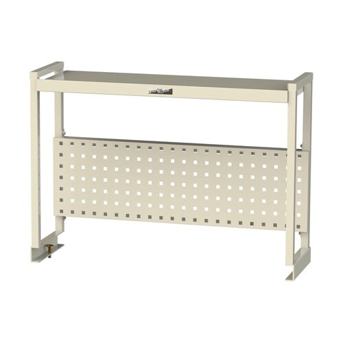 棚1段・パンチングパネル1枚付きの作業台用上棚。作業に使う工具やパーツを手の届く位置に収納!傾斜可能の棚板で収納物が見えやすく取り出しやすい。スチール製のため磁石での書類掲示にも便利。 |