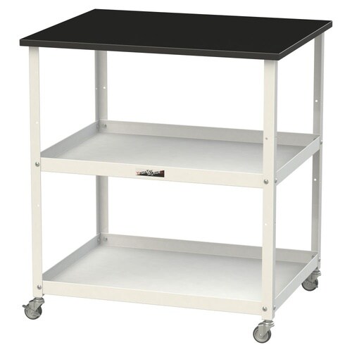 高耐薬品天板仕様!実験室用・研究室用の簡易作業台・運搬用カート・実験台の補助テーブルとして、1台3役の便利な天板付きワゴン!検査・検品作業もしやすい天板ブラック色。学校や病院でのご使用にも。 |