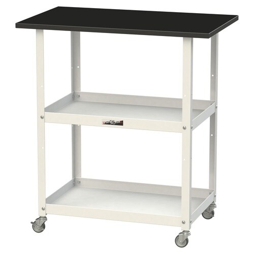 高耐薬品天板仕様!実験室用・研究室用の簡易作業台・運搬用カート・実験台の補助テーブルとして、1台3役の便利な天板付きワゴン!検査・検品作業もしやすい天板ブラック色。学校や病院でのご使用にも。 |