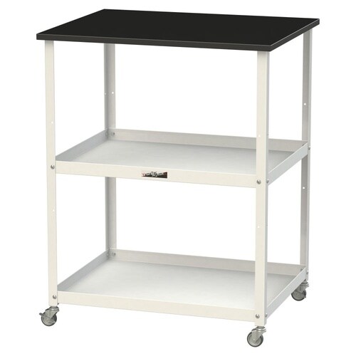 高耐薬品天板仕様!実験室用・研究室用の簡易作業台・運搬用カート・実験台の補助テーブルとして、1台3役の便利な天板付きワゴン!検査・検品作業もしやすい天板ブラック色。学校や病院でのご使用にも。 |