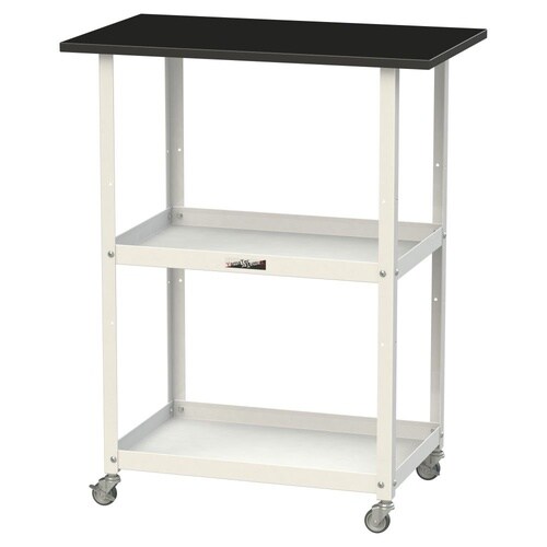 高耐薬品天板仕様!実験室用・研究室用の簡易作業台・運搬用カート・実験台の補助テーブルとして、1台3役の便利な天板付きワゴン!検査・検品作業もしやすい天板ブラック色。学校や病院でのご使用にも。 |