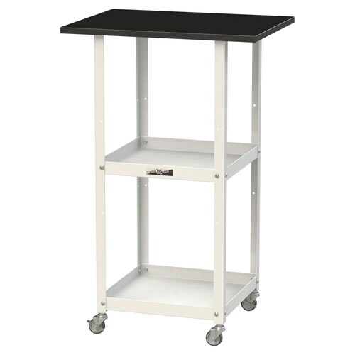 高耐薬品天板仕様!実験室用・研究室用の簡易作業台・運搬用カート・実験台の補助テーブルとして、1台3役の便利な天板付きワゴン!検査・検品作業もしやすい天板ブラック色。学校や病院でのご使用にも。 |