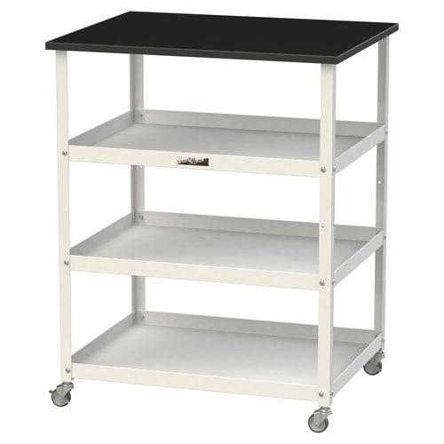 高耐薬品天板仕様!実験室用・研究室用の簡易作業台・運搬用カート・実験台の補助テーブルとして、1台3役の便利な天板付きワゴン!検査・検品作業もしやすい天板ブラック色。学校や病院でのご使用にも。 |