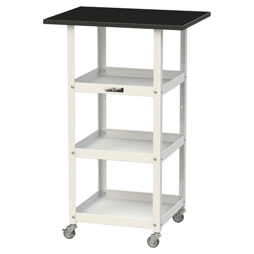 高耐薬品天板仕様!実験室用・研究室用の簡易作業台・運搬用カート・実験台の補助テーブルとして、1台3役の便利な天板付きワゴン!検査・検品作業もしやすい天板ブラック色。学校や病院でのご使用にも。 |
