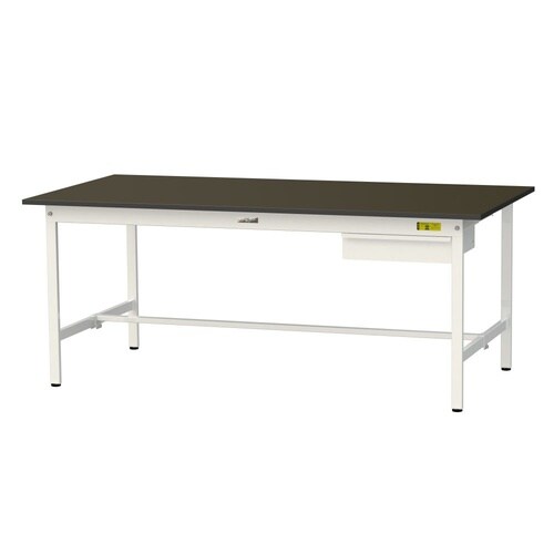実験用作業台 引出付 指紋レスメラミン天板 ワークテーブルLAB W1800D900H740mm SLM−1890U−BRW 天板ブラウン脚ホワイト 1台【メーカー直送】