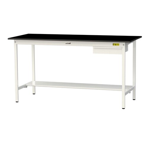 実験用作業台 引出付 半面棚付 耐薬品ケミテクト天板 ワークテーブルLAB W1800D750H950mm SLKH−1875UT−BKW 天板ブラック脚ホワイト 1台【メーカー直送】