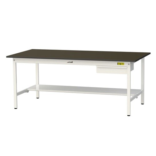 実験用作業台 引出付 半面棚付 指紋レスメラミン天板 ワークテーブルLAB W1800D900H740mm SLM−1890UT−BRW 天板ブラウン脚ホワイト 1台【メーカー直送】