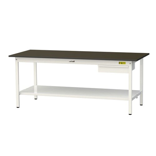 実験用作業台 引出付 全面棚付 指紋レスメラミン天板 ワークテーブルLAB W1800D750H740mm SLM−1875UTT−BRW 天板ブラウン脚ホワイト 1台【メーカー直送】