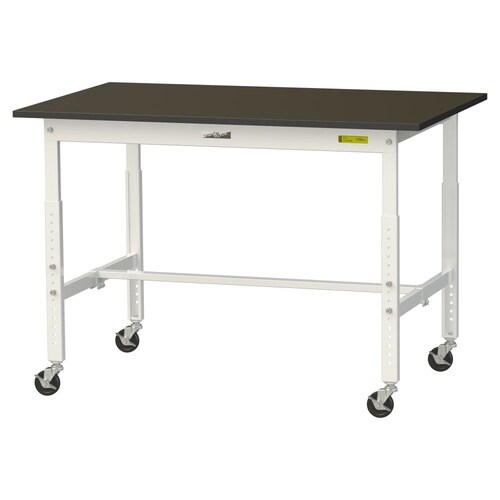 実験用作業台 高さ調整移動式 指紋レスメラミン天板 ワークテーブルLAB W1200D750H685−985mm SLMAC−1275−BRW 天板ブラウン脚ホワイト 1台【メーカー直送】