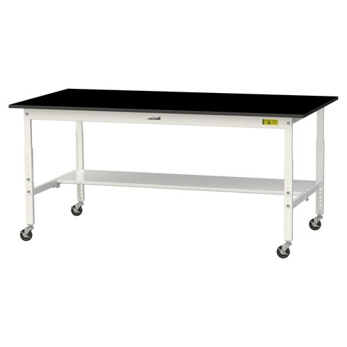 実験用作業台 高さ調整移動式 半面棚付 耐薬品ケミテクト天板 ワークテーブルLAB W1800D900H685−985mm SLKAC−1890T−BKW 天板ブラック脚ホワイト 1台【メーカー直送】