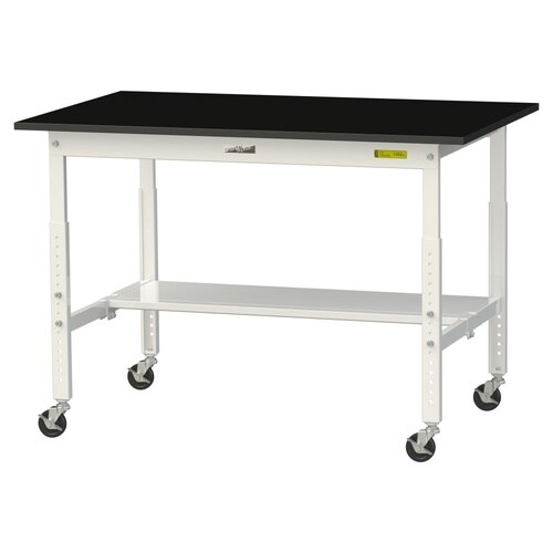 実験用作業台 高さ調整移動式 半面棚付 耐薬品ケミテクト天板 ワークテーブルLAB W1200D750H685−985mm SLKAC−1275T−BKW 天板ブラック脚ホワイト 1台【メーカー直送】