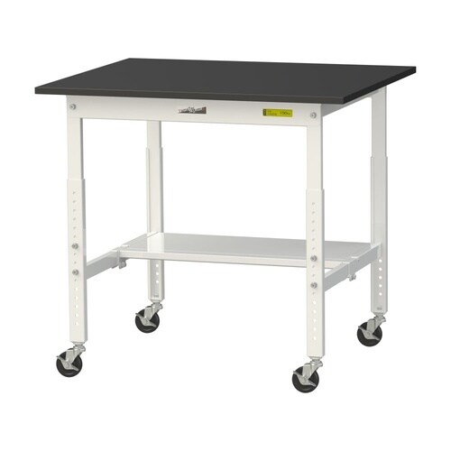 実験用作業台 高さ調整移動式 半面棚付 耐薬品ケミテクト天板 ワークテーブルLAB W900D750H685−985mm SLKAC−975T−BKW 天板ブラック脚ホワイト 1台【メーカー直送】