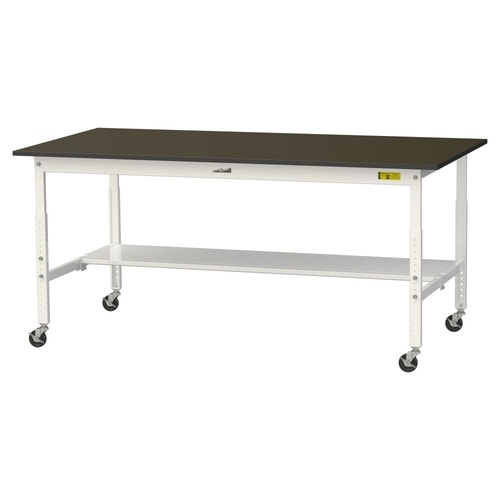 実験用作業台 高さ調整移動式 半面棚付 指紋レスメラミン天板 ワークテーブルLAB W1800D900H685−985mm SLMAC−1890T−BRW 天板ブラウン脚ホワイト 1台【メーカー直送】