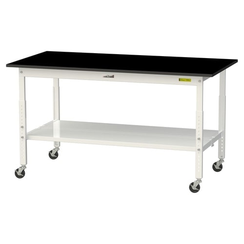 実験用作業台 高さ調整移動式 全面棚付 耐薬品ケミテクト天板 ワークテーブルLAB W1500D750H685−985mm SLKAC−1575TT−BKW 天板ブラック脚ホワイト 1台【メーカー直送