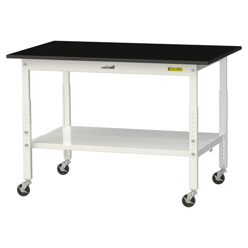 実験用作業台 高さ調整移動式 全面棚付 耐薬品ケミテクト天板 ワークテーブルLAB W1200D750H685−985mm SLKAC−1275TT−BKW 天板ブラック脚ホワイト 1台【メーカー直送