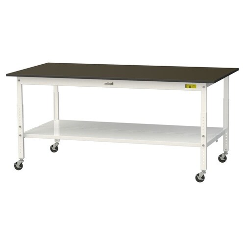 実験用作業台 高さ調整移動式 全面棚付 指紋レスメラミン天板 ワークテーブルLAB W1800D900H685−985mm SLMAC−1890TT−BRW 天板ブラウン脚ホワイト 1台【メーカー直送