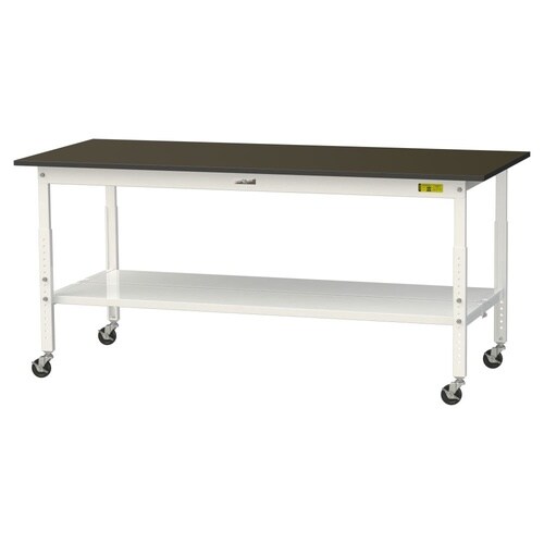実験用作業台 高さ調整移動式 全面棚付 指紋レスメラミン天板 ワークテーブルLAB W1800D750H685−985mm SLMAC−1875TT−BRW 天板ブラウン脚ホワイト 1台【メーカー直送