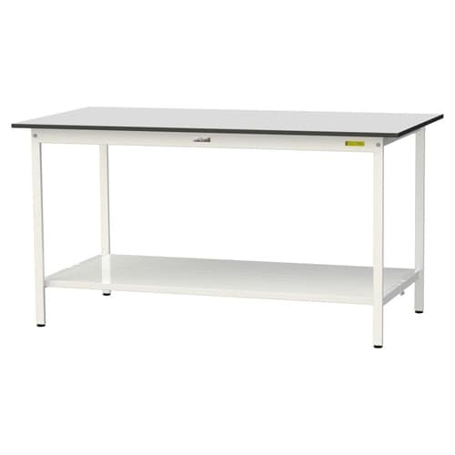 軽量作業台/耐荷重150kg 全面棚付 RoHS2対応塩ビシート天板 ワークテーブル150 W1800D900H950mm SURH−1890TT−GYW 天板Lグレー脚ホワイト 1台【メーカー直送