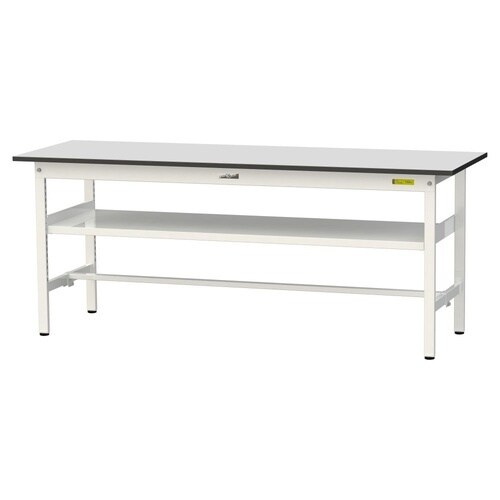 軽量作業台/耐荷重150kg 中間棚付 RoHS2対応塩ビシート天板 ワークテーブル150 W1800D600H740mm SUR−1860F−GYW 天板ライトグレー脚ホワイト 1台【メーカー直送