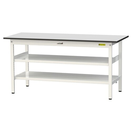 軽量作業台 中間棚付 全面棚付 RoHS2対応塩ビシート天板 ワークテーブル150 W1500D600H740mm SUR−1560TTF−GYW 天板ライトグレー脚ホワイト 1台【メーカー直送】