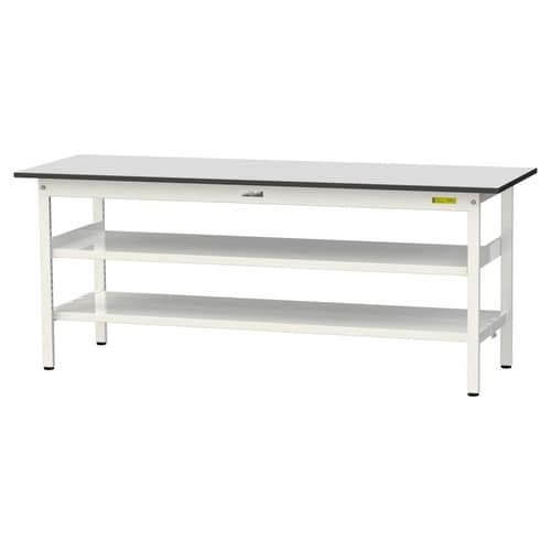 軽量作業台 中間棚付 全面棚付 RoHS2対応塩ビシート天板 ワークテーブル150 W1800D600H740mm SUR−1860TTF−GYW 天板ライトグレー脚ホワイト 1台【メーカー直送】