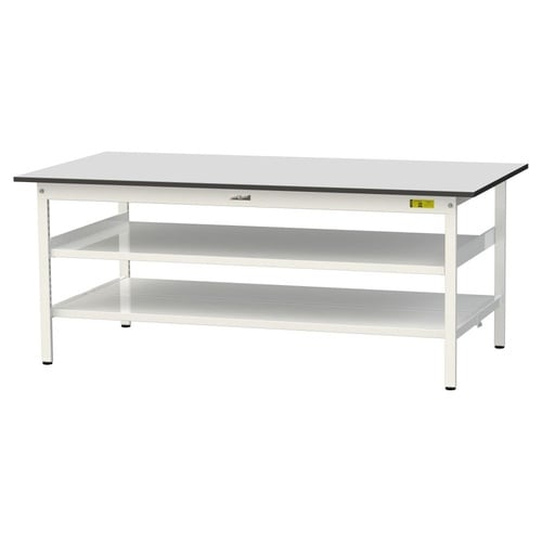 軽量作業台 中間棚付 全面棚付 RoHS2対応塩ビシート天板 ワークテーブル150 W1800D900H740mm SUR−1890TTF−GYW 天板ライトグレー脚ホワイト 1台【メーカー直送】