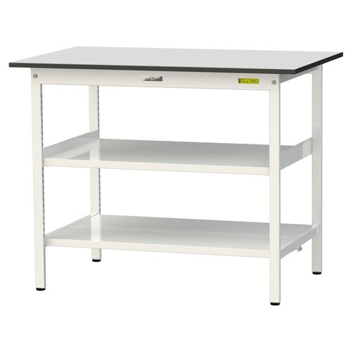 軽量作業台 中間棚付 全面棚付 RoHS2対応塩ビシート天板 ワークテーブル150 W1200D750H950mm SURH−1275TTF−GYW 天板ライトグレー脚ホワイト 1台【メーカー直送】