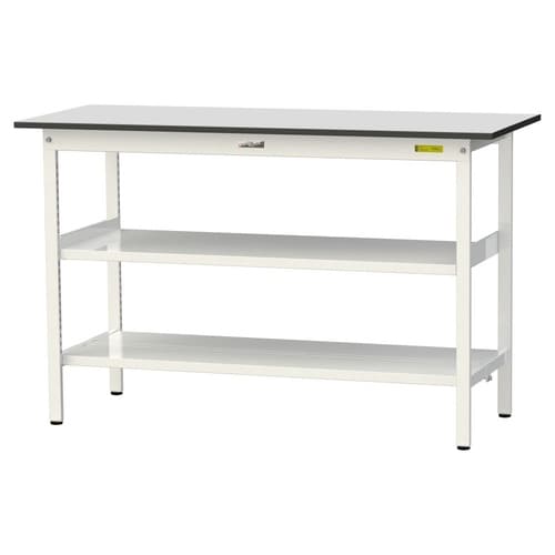 軽量作業台 中間棚付 全面棚付 RoHS2対応塩ビシート天板 ワークテーブル150 W1500D600H950mm SURH−1560TTF−GYW 天板ライトグレー脚ホワイト 1台【メーカー直送】