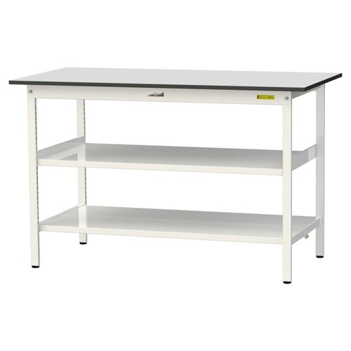 軽量作業台 中間棚付 全面棚付 RoHS2対応塩ビシート天板 ワークテーブル150 W1500D750H950mm SURH−1575TTF−GYW 天板ライトグレー脚ホワイト 1台【メーカー直送】