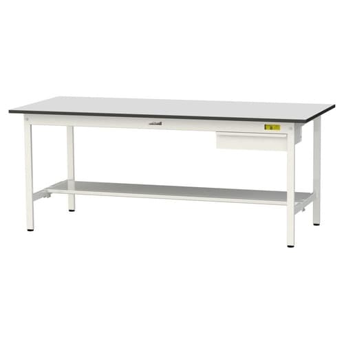 軽量作業台 引出付 半面棚付 RoHS2対応塩ビシート天板 ワークテーブル150 W1800D750H740mm SUR−1875UT−GYW 天板ライトグレー脚ホワイト 1台【メーカー直送】