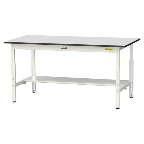 軽量作業台/耐荷重150kg 高さ調整式 半面棚付 RoHS2対応塩ビシート天板 W1500D750H600−900mm SURA−1575T−GYW 天板ライトグレー脚ホワイト 1台【メーカー直送