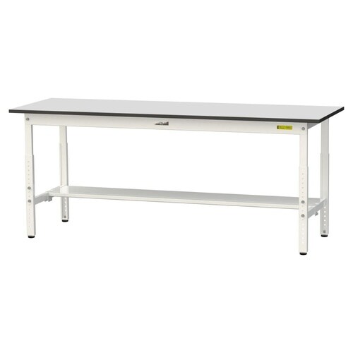 軽量作業台/耐荷重150kg 高さ調整式 半面棚付 RoHS2対応塩ビシート天板 W1800D600H600−900mm SURA−1860T−GYW 天板ライトグレー脚ホワイト 1台【メーカー直送